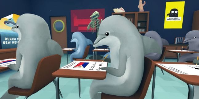 What Is it? A stealth game where the player is stuck at a desk trying to cheat off other students. Who are, um, dolphins.