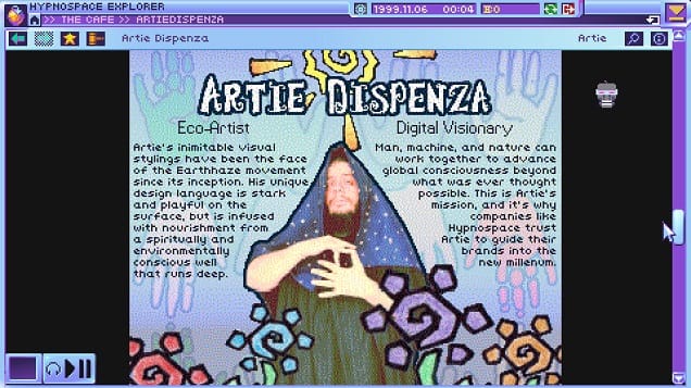 There’s also a hard rule that no named ‘real’ brands, celebrities, properties, or historic figures exist in Hypnospace. Music genres and art movements are also invented, and often don’t have real-world counterparts (eg Flip-Flop, Earthhaze, Coolpunk), Ideally, this’ll make the game more culturally accessible in that there aren’t specific references to get first for content to be funny or relatable. This game isn’t for people who grew up in the 1990s.
